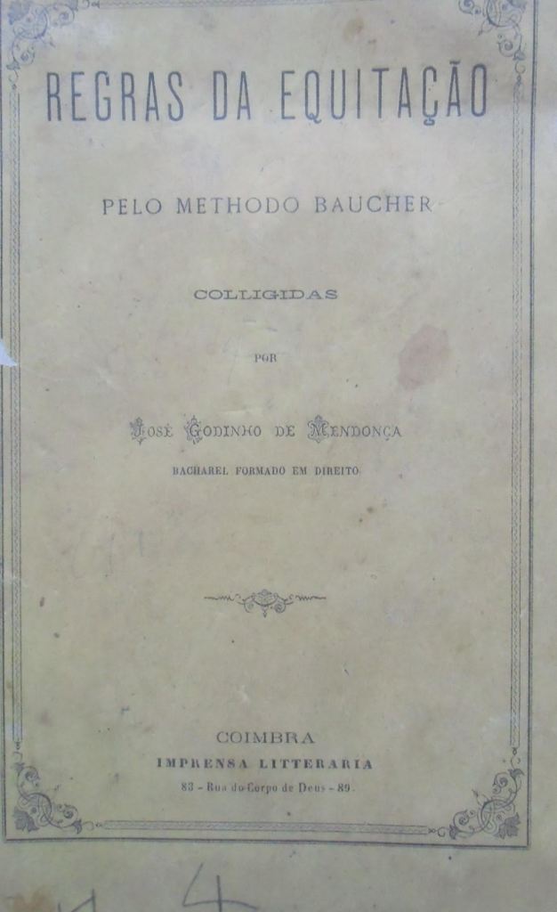 Regras da Equitação pelo Methodo de Baucher , colligidas por José Godinho de Mendonça , Bacharel formado em Direito .