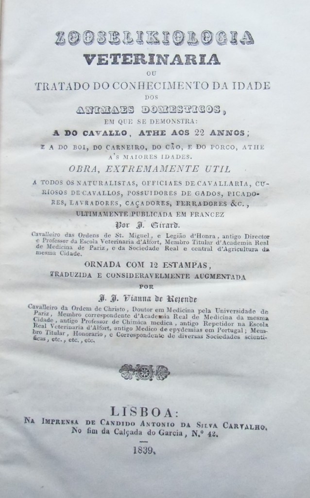 Claude Bourgelat ( 1712 / 1779 ) , foi cavaleiro , médico , hipiatra e veterinario francês , fundador das escolas veterinárias do seu paìs . Escreveu uma série de obras importantes ligadas ao tema de Veterinaria e Hipiatria . O tradutôr , nasceu em Luanda em 1775 e morreu em 1862 com o posto de Bigadeiro . A traduçâo em portugues foi feita a partir da 4.ª edição francesa desta obra ( 1805 ) .